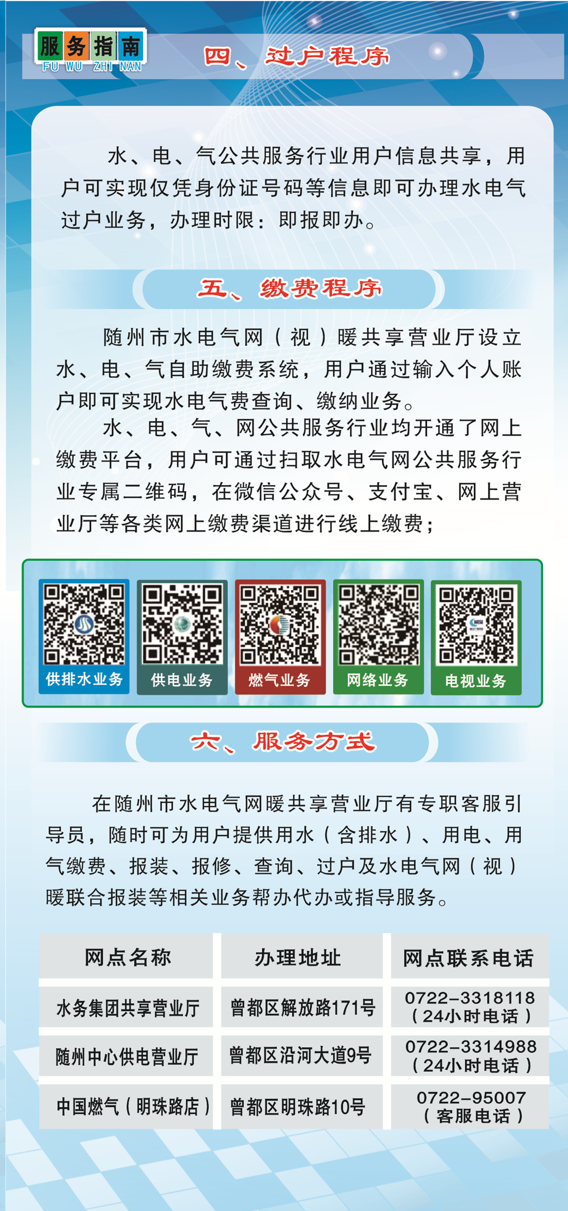 《隨州市水電氣網(wǎng)暖共享營業(yè)廳辦事服務指南》