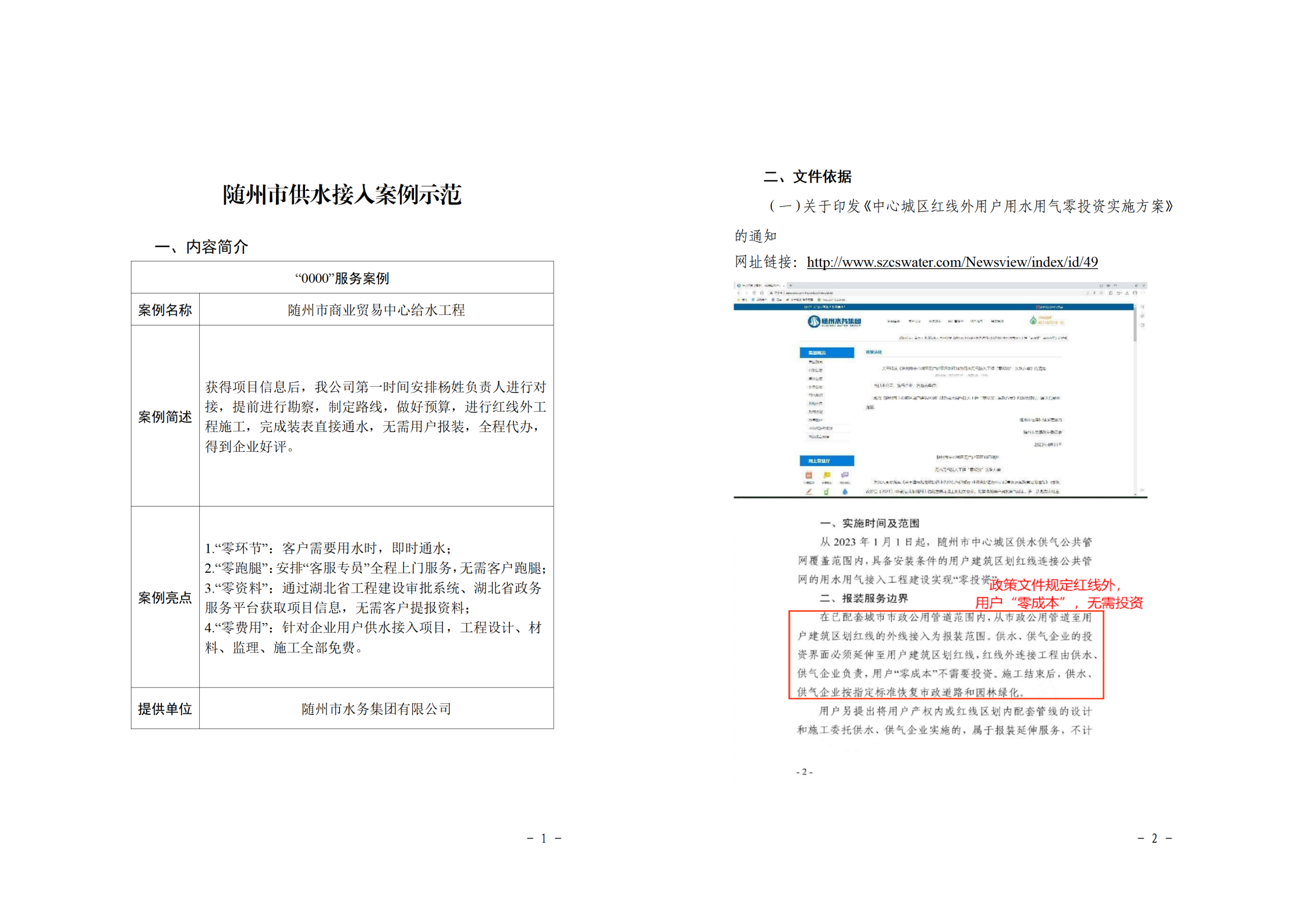 隨州市水務(wù)集團(tuán)主要職責(zé)是向隨州市中心城區(qū)、曾都區(qū)、隨縣以及高新區(qū)提供供水服務(wù),集團(tuán)公司下轄城市供水公司、建設(shè)工程公司、水質(zhì)檢測(cè)公司、隨縣供水公司、康潤(rùn)實(shí)業(yè)公司5家全資子公司。下面展示隨州市中心城區(qū)供水接入案例示范。