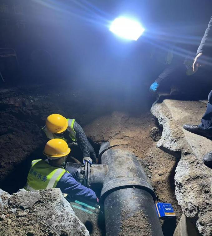 當(dāng)城市沉入夜色,清河路、鹿鶴大道等四處水務(wù)工地卻亮如白晝,隨州市水務(wù)集團(tuán)建設(shè)工程公司20名“水務(wù)尖兵”化身“城市管道醫(yī)生”為城市供水管網(wǎng)進(jìn)行精密的手術(shù)。